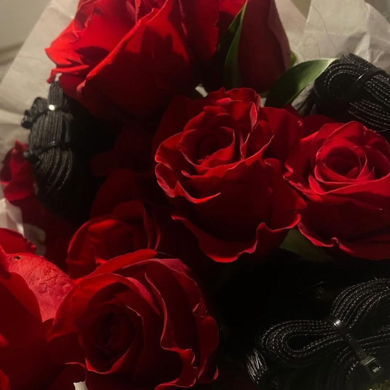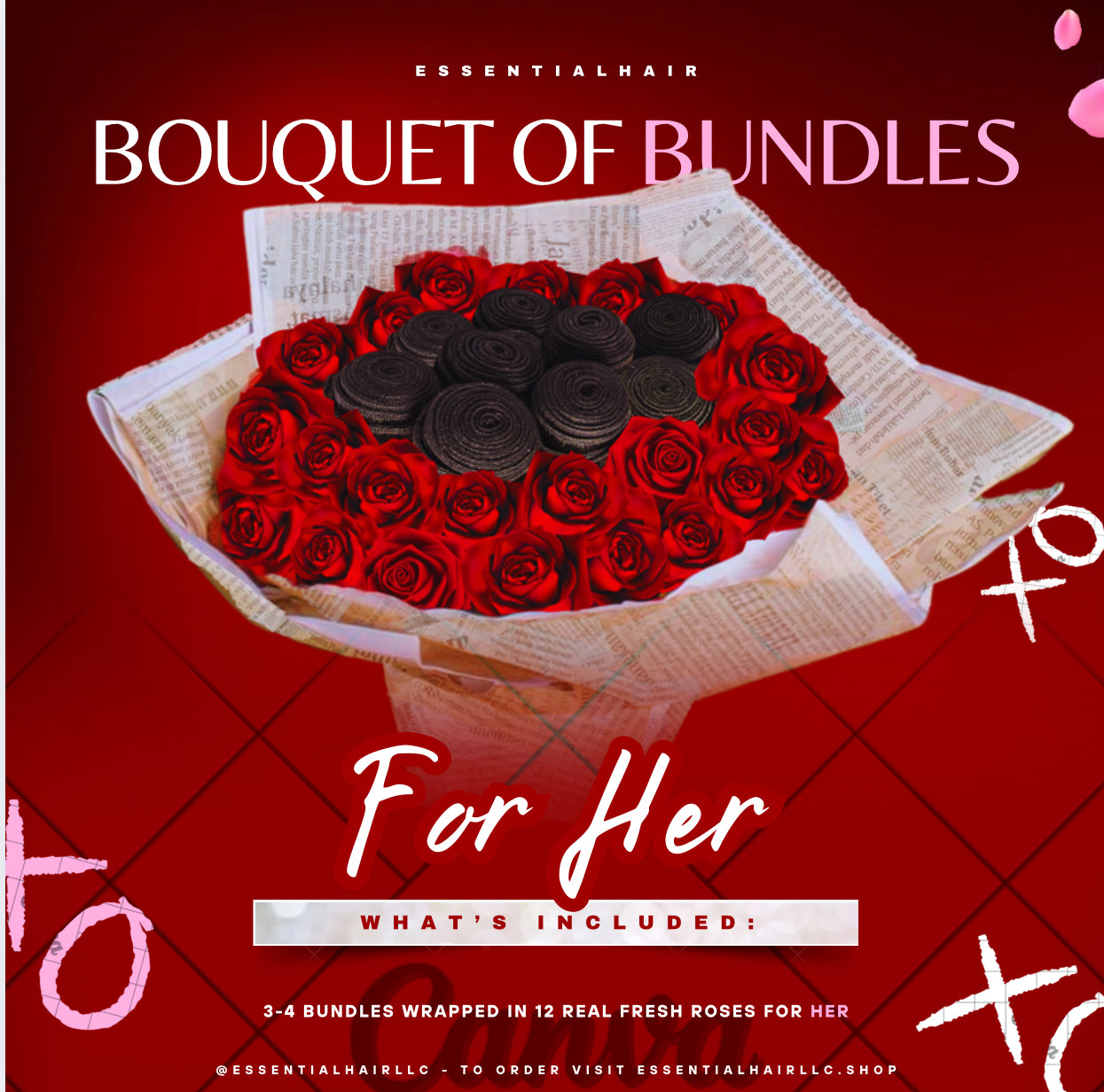 3-4 bundles wrapped in 12 REAL fresh roses! Who wouldn't love a Bouquet of Bundles with roses! best way to steal a girls heart this upcoming Valentines. day!